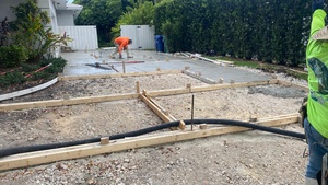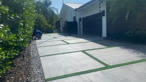 This project features a custom concrete driveway designed to elevate the home’s exterior with a clean, modern, and elegant aesthetic. The driveway incorporates a rectangular, staggered pattern with a contrasting turn outline, adding visual depth and architectural interest while maintaining a timeless, sophisticated look.