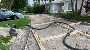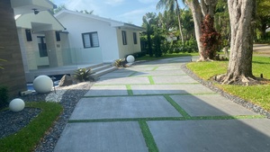 This project features a custom concrete driveway designed to elevate the home’s exterior with a clean, modern, and elegant aesthetic. The driveway incorporates a rectangular, staggered pattern with a contrasting turn outline, adding visual depth and architectural interest while maintaining a timeless, sophisticated look.